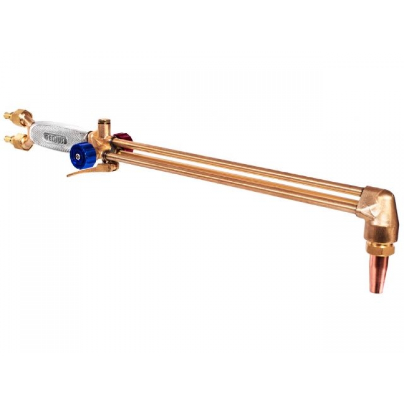 Резак трехтрубный пропано-кислородный с внутрисопловым смешением газов предназначен для резки раскроя и разогрева деталей, заготовок, листового и сортового проката из черных металлов. За счет внутрисоплового смешения газов резаки имеют повышенную стойкость к обратному удару и способны длительное время работать в тяжелых условиях. Резак имеет стандартный мундштук и совместим с мундштуками других производителей
