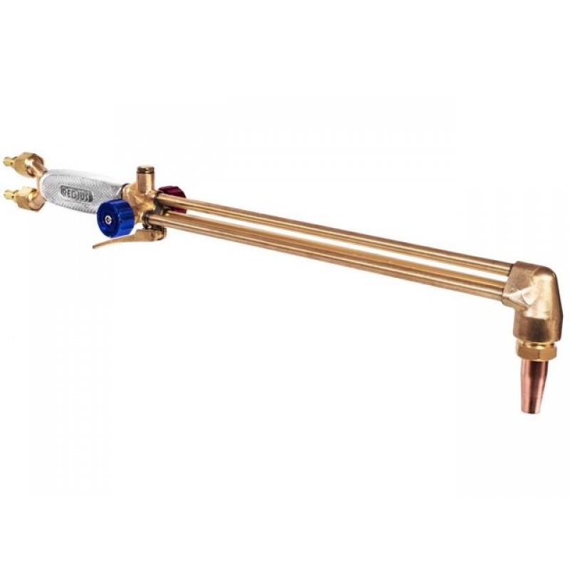 Резак трехтрубный пропано-кислородный с внутрисопловым смешением газов предназначен для резки раскроя и разогрева деталей, заготовок, листового и сортового проката из черных металлов. За счет внутрисоплового смешения газов резаки имеют повышенную стойкость к обратному удару и способны длительное время работать в тяжелых условиях. Резак имеет стандартный мундштук и совместим с мундштуками других производителей