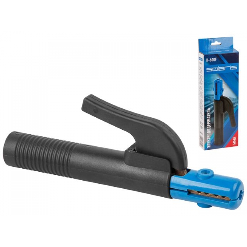 Поставляется в индивидуальной цветной картонной упаковке с подвесом.. Электрододержатель - аксессуар для ручной дуговой сварки, который удерживает электрод во время проведения сварочных работ. Электрод можно установить в различных положениях: под углом 45°, 90°, 135° и 180° в зависимости от требуемых задач. Модель H-600F - оптимальный выбор для профессиональной эксплуатации. Удобство захвата, надежная фиксация электрода, оптимальные размеры и вес, качественные материалы - основные критерии при длительной эксплуатации электрододержателя.