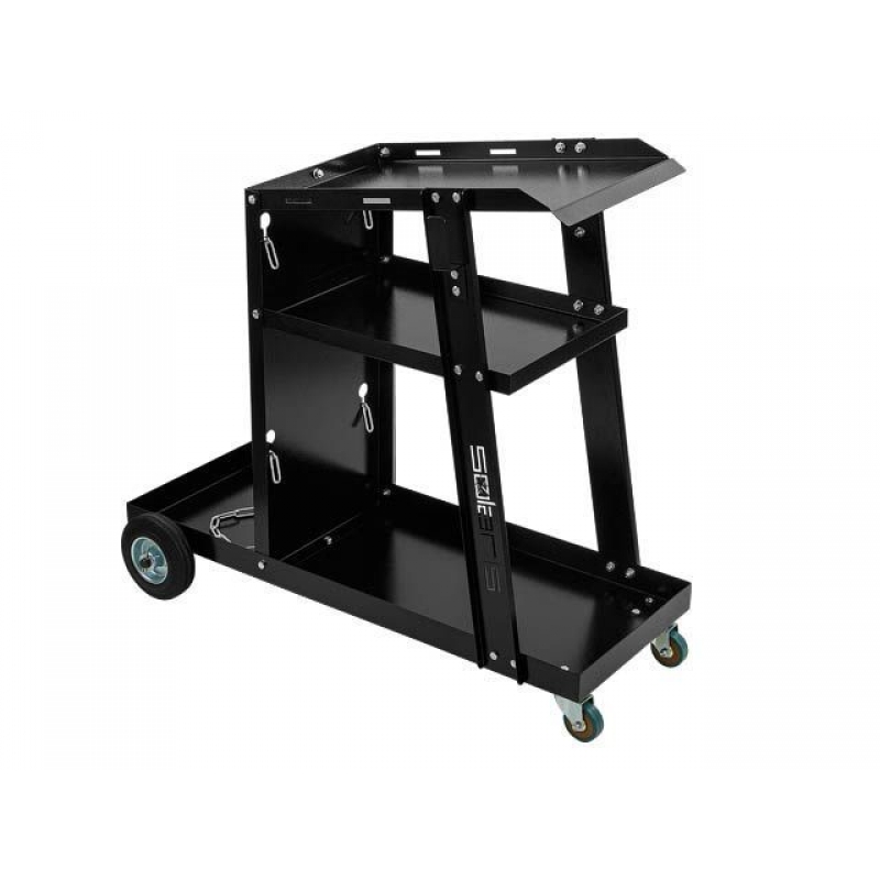 Тележка предназначена для использования в мастерских, производственных цехах и прочих объектах, где применяются сварочные работы для расположения на ней сварочных аппаратов, газовых баллонов, аксессуаров, расходных частей.