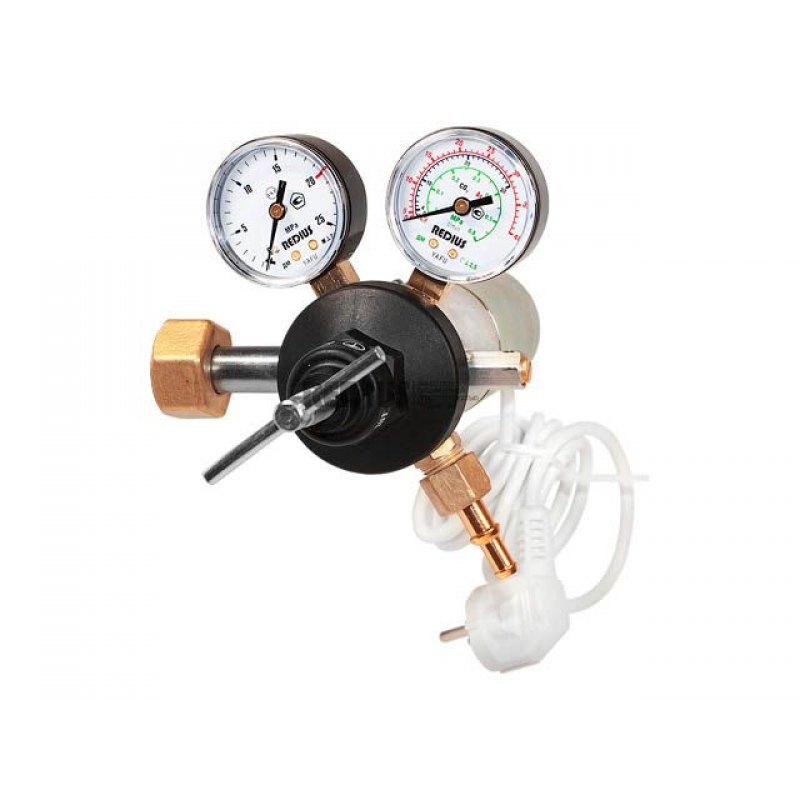 Масса комплекта, кг: 1,0 Регулятор расхода баллонный одноступенчатый предназначен для понижения и регулирования давления углекислого газа или аргона, поступающего из баллона, и автоматического поддержания постоянного рабочего расхода газа на выходе регулятора в ходе проведения работ. Подогреватель используется для предотвращения замерзания механизмов редуктора при больших расходах газа или при низких температурах окружающей среды. Подогрев осуществляется за счет теплообмена между газом и горячими стенками корпуса подогревателя.