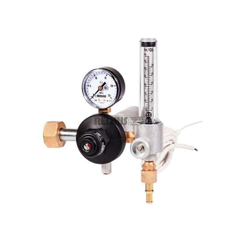 Регулятор расхода баллонный одноступенчатый предназначен для понижения и регулирования давления углекислого газа или аргона, поступающего из баллона, и автоматического поддержания постоянного рабочего расхода газа на выходе регулятора в ходе проведения работ. Подогреватель используется для предотвращения замерзания механизмов редуктора при больших расходах газа или при низких температурах окружающей среды. Подогрев осуществляется за счет теплообмена между газом и горячими стенками корпуса подогревателя.