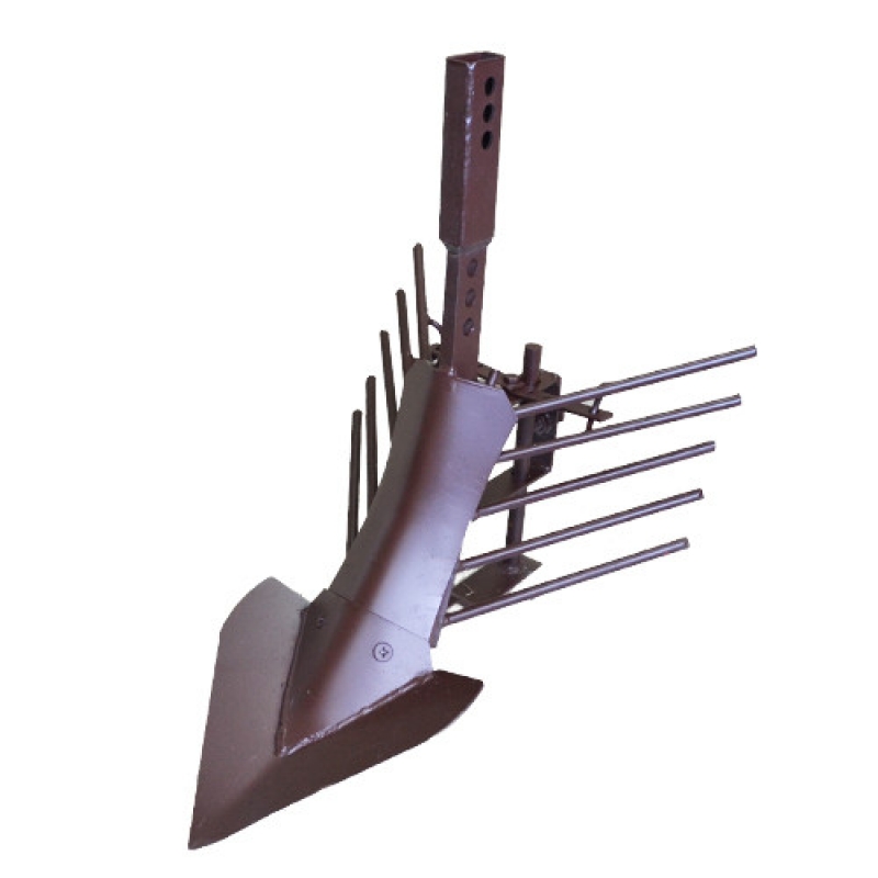 Картофелевыкапыватель для мотоблока МТЗ-09 и других. В отличие от плуга легок в работе и не повреждает клубни. Он аккуратно приподнимает пласт земли, просеивает его, и выкладывает клубни на поверхность так, что в земле ничего не остается. Данная модель эффективно работает на почвах любого типа, и предназначена для эксплуатации на дачных и индивидуальных приусадебных участках. Не используется в промышленных масштабах. Агрегатируется с винтовой сцепкой МТЗ