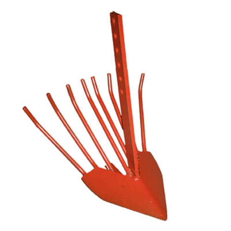 Выкапыватель однорядный. Ширина захвата при выкапывании регулируется отгибанием прутьев. Нерегулируемая полевая доска. Несъёмный носок для подреза почвы. Стойка 10 мм, крепление под сцепку ВРМЗ винтовую облегчённую или под сцепку для навесного оборудования, у которого толщина стойки 10 мм (сцепка в комплект не входит).