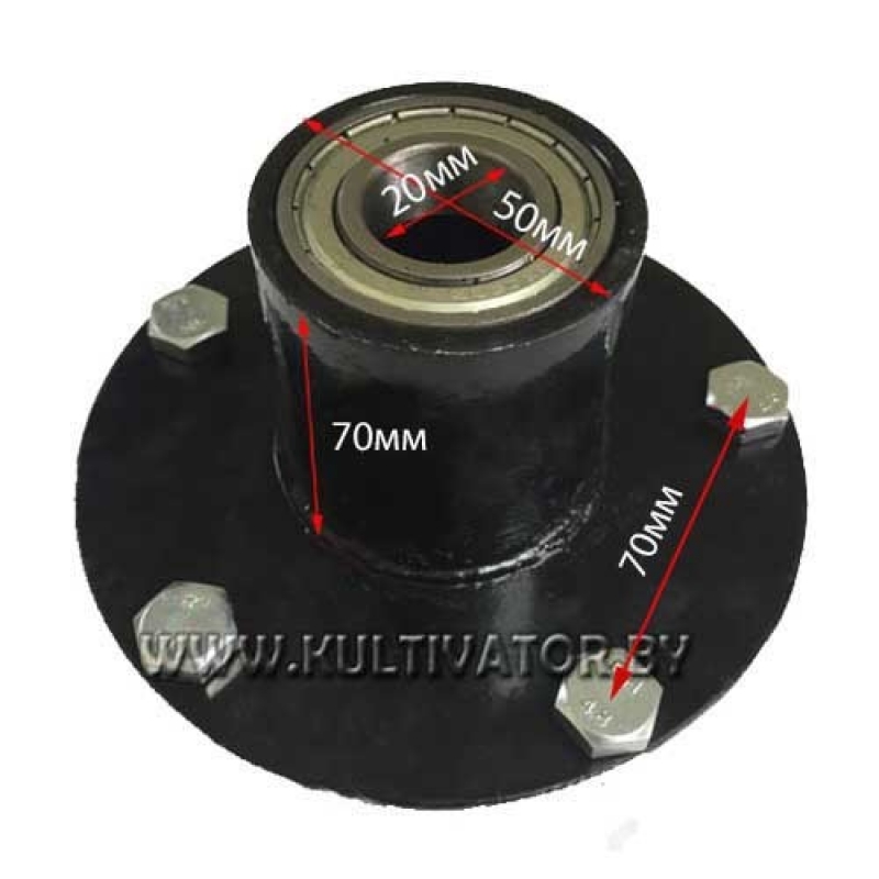 Ступица колеса тележки мотоблочной в сборе с подшипниками. (крепежные элементы в комплект не входят)