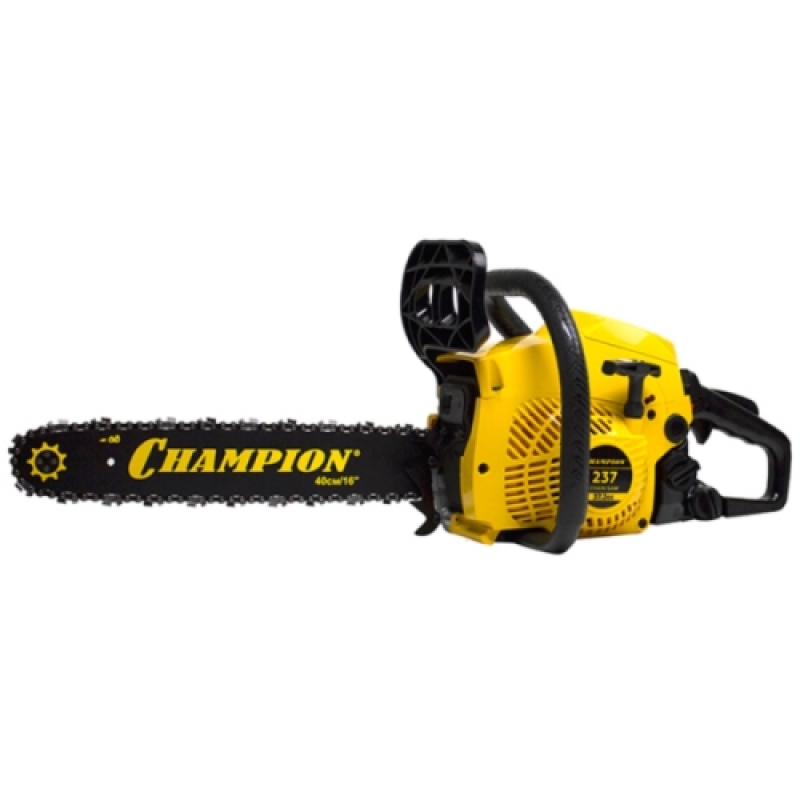 Бензопила CHAMPION 237 16" относится к классу бытовых пил и предназначена для валки деревьев, заготовки дров, обрезки сучьев и веток, используется при выполнении строительных работ. Бензиновая пила CHAMPION 237 оснащена одноцилиндровым 2-тактным двигателем с воздушным охлаждением мощностью 2.0 л.с. Двигатель оборудован системой легкого запуска - в состав стартерной группы входит стальная пружина облегчающая раскручивание маховика двигателя, а так же в ручке стартера имеется стальная пружина, способствующая плавному и комфортному запуску двигателя. Мотопила имеет топливный насос (праймер) и комбинированную систему управления заслонками карбюратора AUTO ,что так же обеспечивает легкий и стабильный запуск двигателя. Объем топливного бака бензопилы 237 16" составляет 0.31 л, который заправляется топливной смесью, состоящей из бензина АИ-92 и масла для 2-тактных двигателей. В бензиновой цепной пиле CHAMPION 237 предусмотрена функция подогрева карбюратора. В отсеке воздушного фильтра имеется заслонка "зима-лето", которая позволяет при температуре окружающей среды ниже 10 градусов по Цельсию перевести пилу в режим работы "зима" открыв заслонку, тогда при работе агрегата теплый воздух из моторного отсека будет поступать в отсек воздушного фильтра и карбюратора, исключая их замерзание и обледенение. При такой опции агрегат стабильно и надежно работает при низких температурах окружающей среды. Бензиновая пила CHAMPION 237 16" обеспечена легким доступом к воздушному фильтру, который осуществляется без инструмента, таким образом пользователь всегда может контролировать чистоту воздушного фильтра и при необходимости почистить или заменить фильтрующий элемент.Воздушный фильтр выполнен из капрона и имеет длительный срок службы. Боковое натяжение цепи позволяет быстро, удобно и безопасно подтянуть или заменить пильную цепь на бензиновой пиле CHAMPION 237 16". Смазка цепи и шины осуществляется автоматически. Данная функция обеспечена надежным металлическим маслонасосом, который приводится в действие от чашки сцепления. На холостых оборотах смазка не подается на шину и цепь - экономится смазка , при увеличении оборотов двигателя увеличивается и количество подачи смазки, кроме этого у пользователя есть возможность дополнительно отрегулировать подачу необходимого количества смазки. Бензопила оснащена металлическим зубчатым упором, который обеспечивает удобство и безопасность при работе. Упор крепится двумя винтами к картеру двигателя.