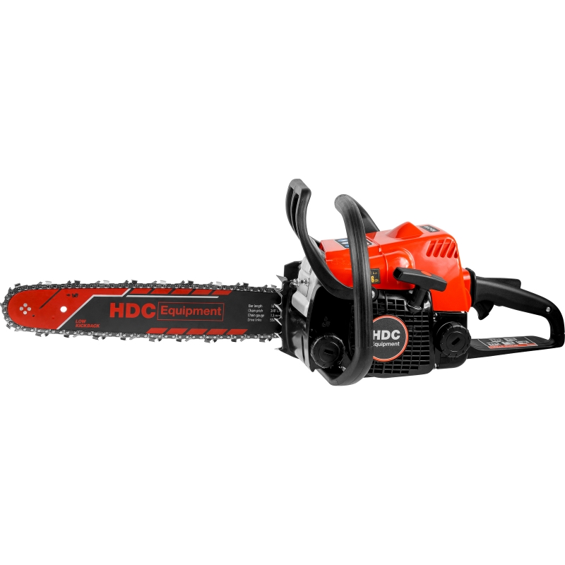 Цепь HDC 40см, Шина HDC 40см, пластиковый кожух, cвечной ключ, емкость для смешивания топливной смеси, отвертка.