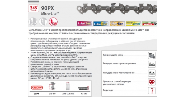 Цепь 35 см 14" 3/8" LP 1.1 мм 52 зв. 90PX OREGON (K) (затачиваются напильником 4.5 мм, для нерегулярного использования)