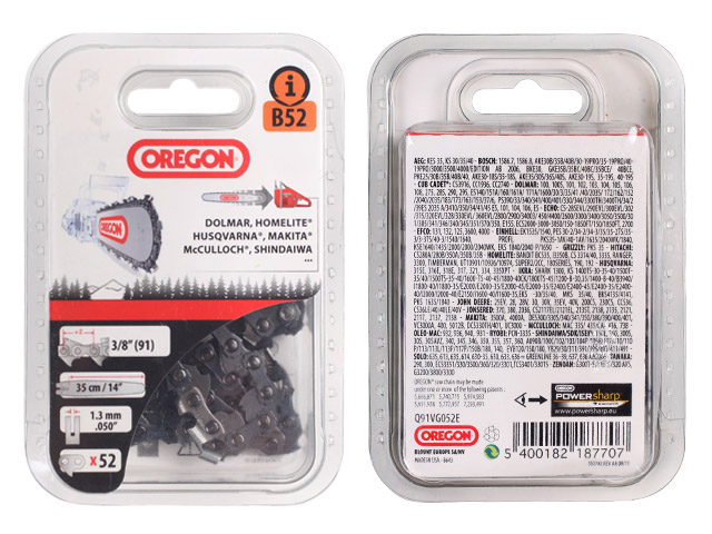 Цепь 35 см 14" 3/8" LP 1.3 мм 52 зв. 91VG (в блистере) OREGON (затачиваются напильником 4.0 мм, для нерегулярн. интенсивного использования)