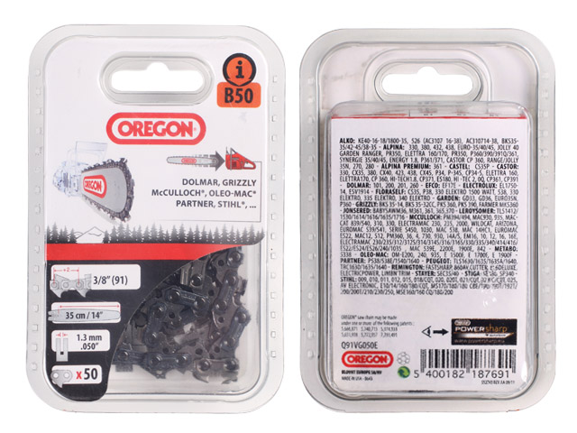 Цепь 35 см 14" 3/8" LP 1.3 мм 50 зв. 91VG (в блистере) OREGON (затачиваются напильником 4.0 мм, для нерегулярн. интенсивного использования)