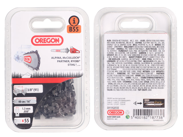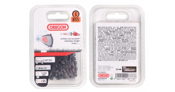 Цепь 40 см 16" 3/8" LP 1.3 мм 55 зв. 91VG (в блистере) OREGON (затачиваются напильником 4.0 мм, для нерегулярн. интенсивного использования)
