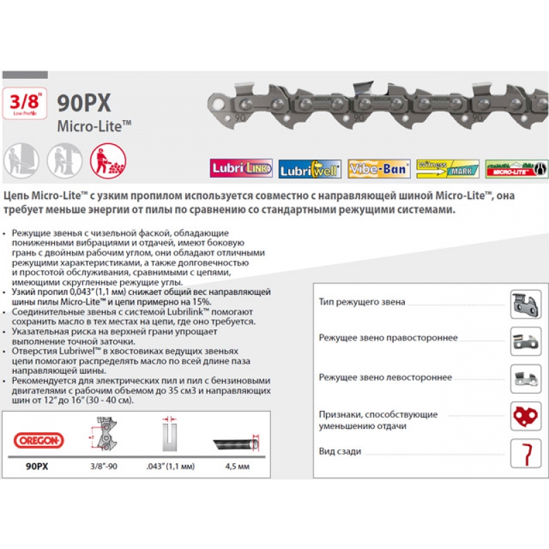 В пильной цепи 90PX используются режущие звенья с острыми фасками тип CHAMFER CHISEL.