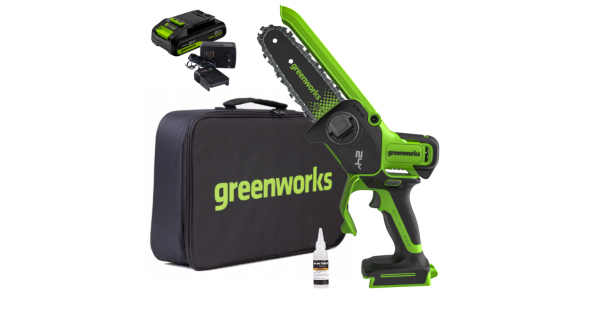 Цепная мини-пила Greenworks GD24CSMNXK2 24V (15 см) аккумуляторная, с АКБ 2 А/ч и ЗУ