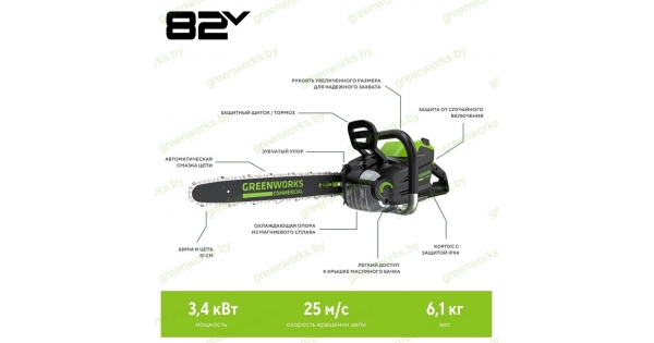 Цепная пила Greenworks GD82CS51K2 82V (51 см) аккумуляторная, с АКБ 2,5 А/ч и ЗУ