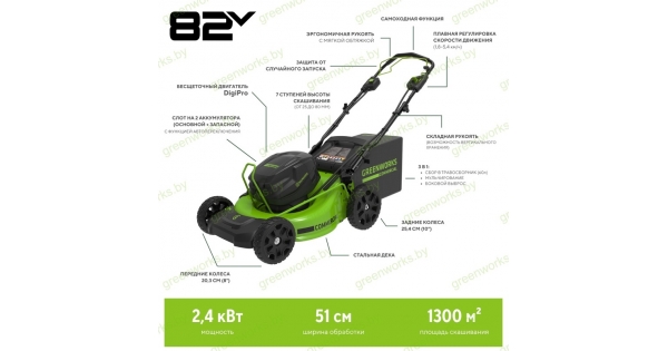 Газонокосилка Greenworks GC82LM51SP2 82V (51 см) самоходная аккумуляторная , без АКБ и ЗУ