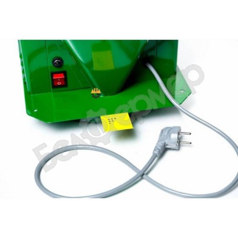 Корпус измельчителя полностью выполнен из металла и качественно окрашен порошковой эмалью, которая препятствует появлению коррозии. Объем загрузочного бункера составляет 16л. Подача зерна регулируется специальной заслонкой, расположенной в нижней части измельчителя.