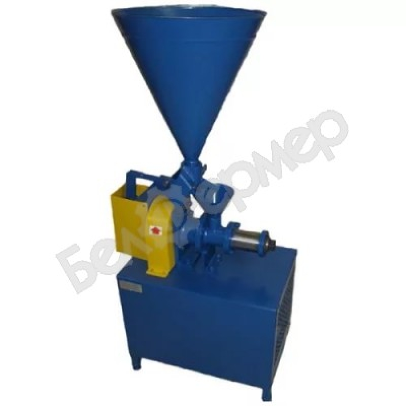 Экструдерная часть состоит из загрузочного бункера, камер загрузочной и прессующей, в которых расположена система шнеков: подающего, промежуточного и прессующего.