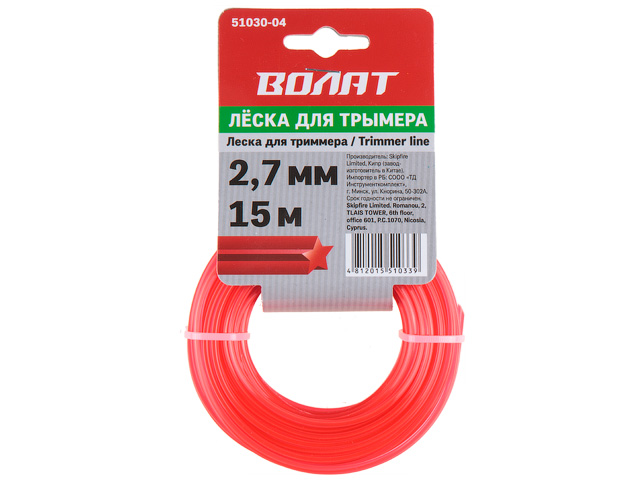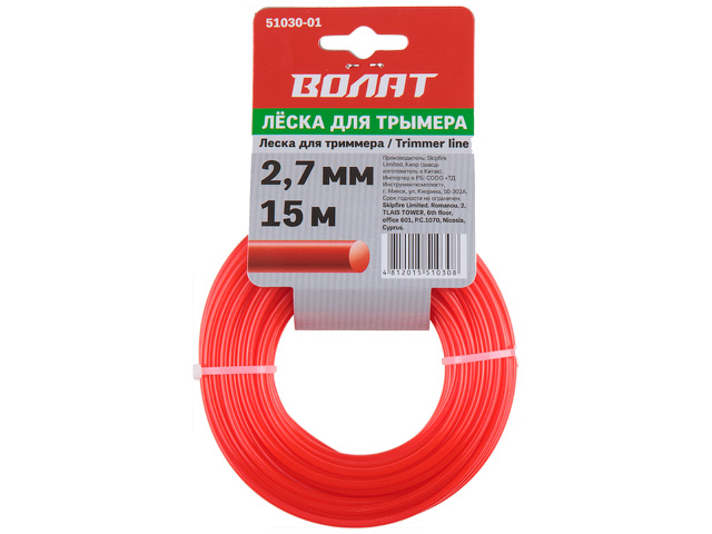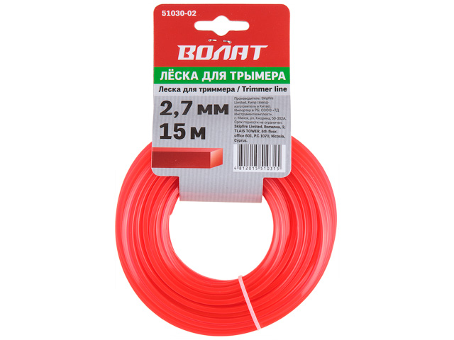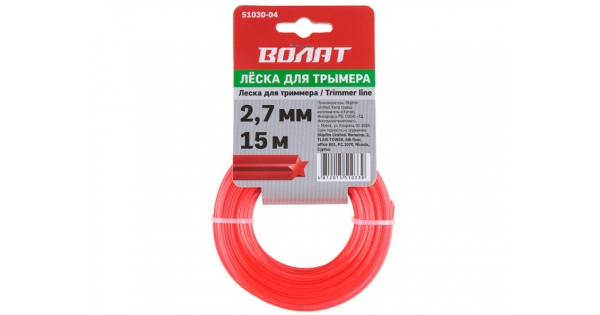Леска ф 2.7 мм х 15 м квадратн. сеч. ВОЛАТ