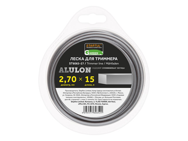Леска ф 2.7 мм х 15 м квадратн. сеч. ALULON STARTUL GARDEN