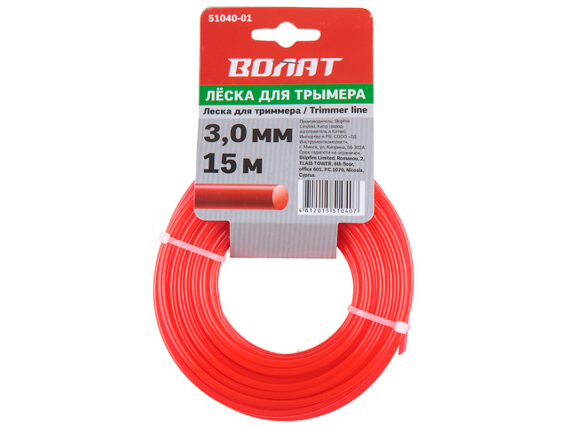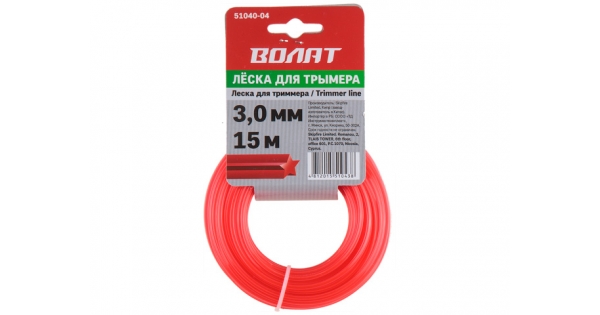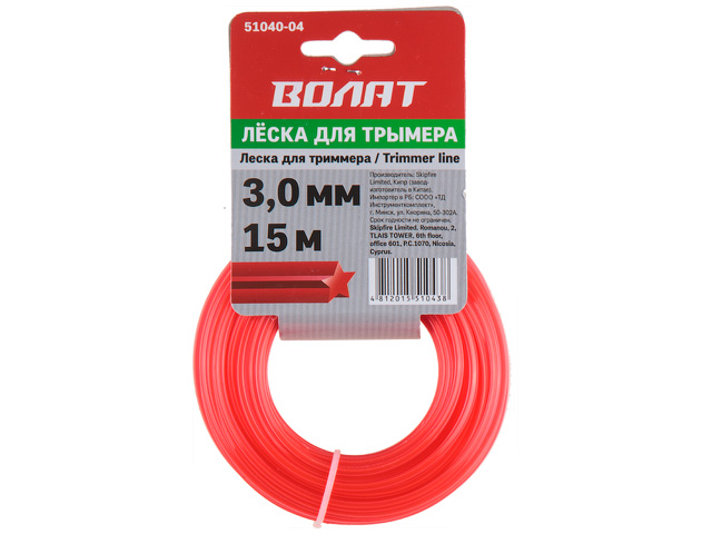 Леска ф 3.0 мм х 15 м квадратн. сеч. ВОЛАТ