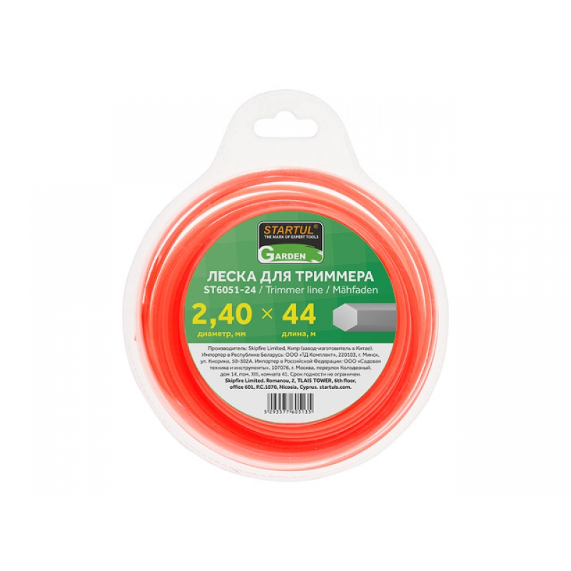 Леска ф 2.4 мм х 44 м шестигр. сеч. STARTUL GARDEN