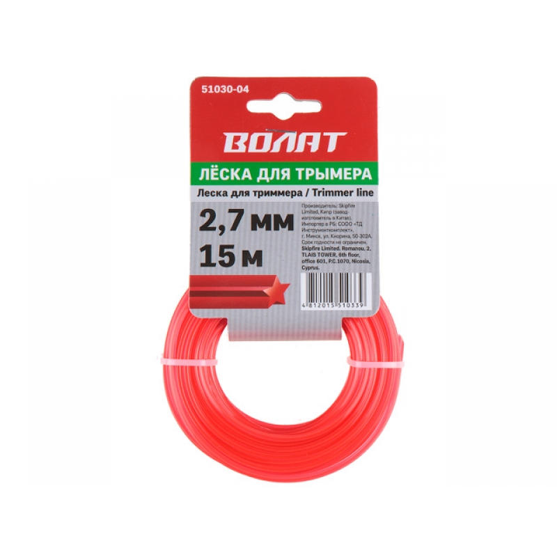 Леска ф 2.7 мм х 15 м "звездочка" ВОЛАТ