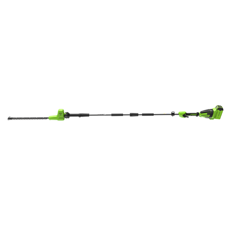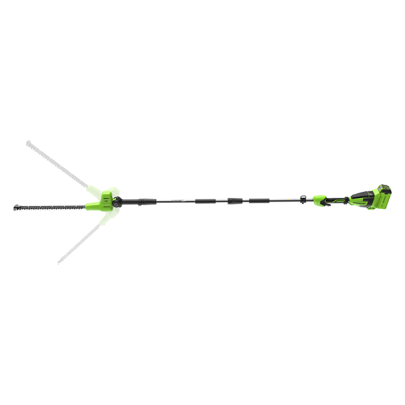 Аккумуляторный кусторез Greenworks 40В G40PH511 (арт. 2302007) – универсальный инструмент для ухода за кустарниками, декоративными растениями и живой изгородью, особенно если она достаточно высокая или длинная. Благодаря длине устройства в 272 см и поворотной режущей головке, кусторез позволяет работать на высоте, не прибегая к использованию лестницы.