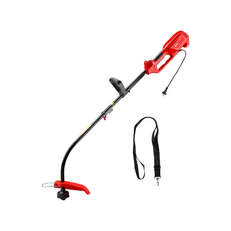 Электрический триммер предназначен для использования на приусадебных участках небольшой и средней площади. Инструмент оснащен мощным двигателем, эргономичной прорезиненной дополнительной рукояткой, которая может устанавливаться в любом удобном положении и также разборной штангой. Специальный кожух защищает оператора от повреждений и летящей травы. Изогнутая штанга обеспечивает удобную работу в труднодоступных местах.. В комплект входит наплечный ремень, который способствует меньшей утомляемости при работе, и косильная головка..