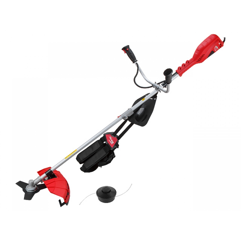 Электрический триммер предназначен для использования на приусадебных участках средней площади. Данная модель триммера отличается мощным двигателем. Велосипедная регулируемая рукоятка обеспечивает надежную фиксацию инструмента в руках и упрощает манипуляцию триммером. Установлена система плавного пуска. Специальный кожух закрывает режущий элемент для защиты оператора от травм и летящей травы. Предусмотрена возможность эксплуатации инструмента, как с леской, так и с трехлопастным ножом. Пластиковые детали изготовлены из ударопрочного материала. В комплект входит ремень на два плеча, который способствует меньшей утомляемости при работе.