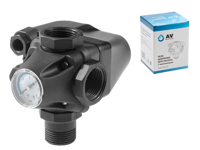 Реле давления для насоса нар.-вн. 1" с манометром AV Engineering