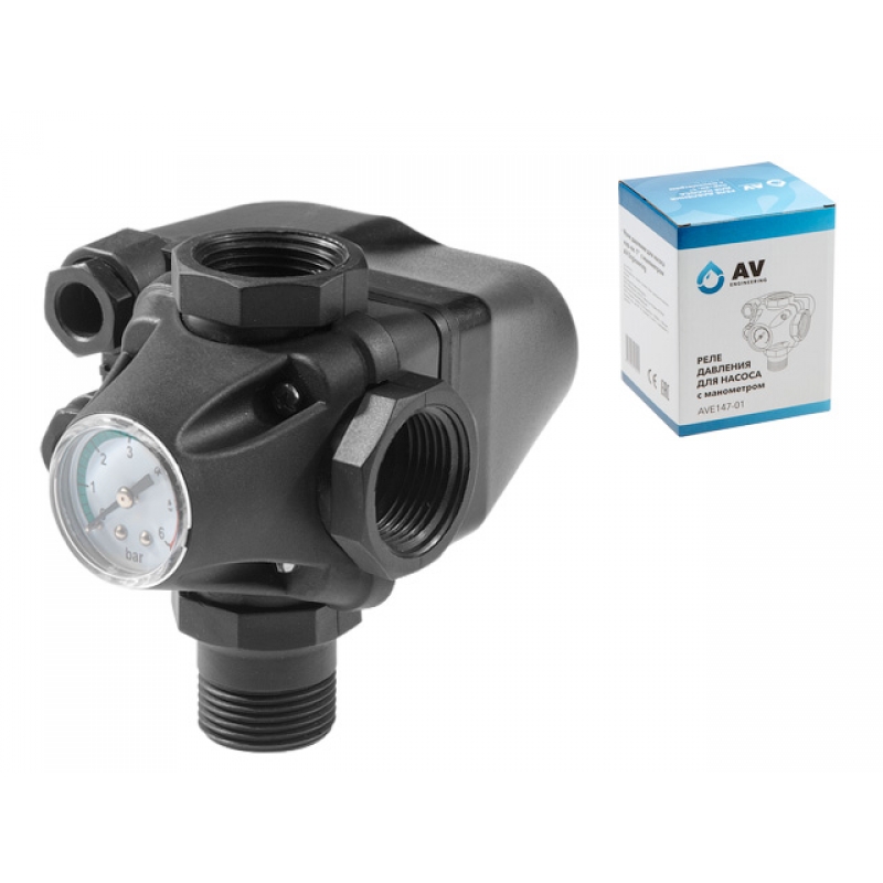 Реле давления AVE147-01 представляет собой 2-х контактное реле замыкания и размыкания электрических цепей, срабатывающее по давлению воды. При малом давлении в системе водоснабжения контакты реле замкнуты, то есть через них проходит электрический ток на насос (насос работает), после повышения давления в системе сверх установленного значения контакты реле размыкаются, цепь разрывается (насос не работает).
