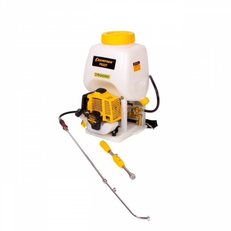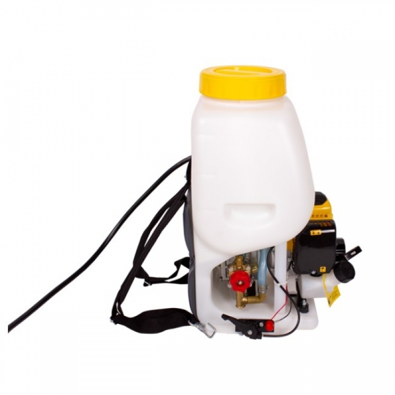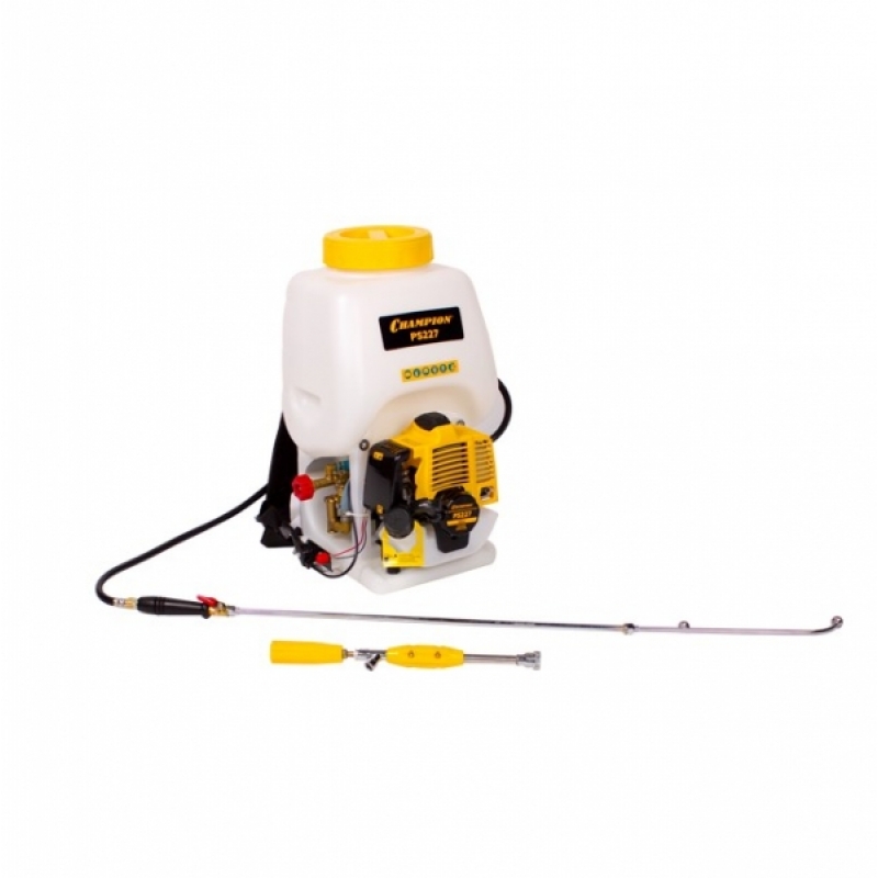 Мощный бензиновый двигатель посылает струю достаточно далеко и высоко, чтобы тщательно обработать кроны деревьев.