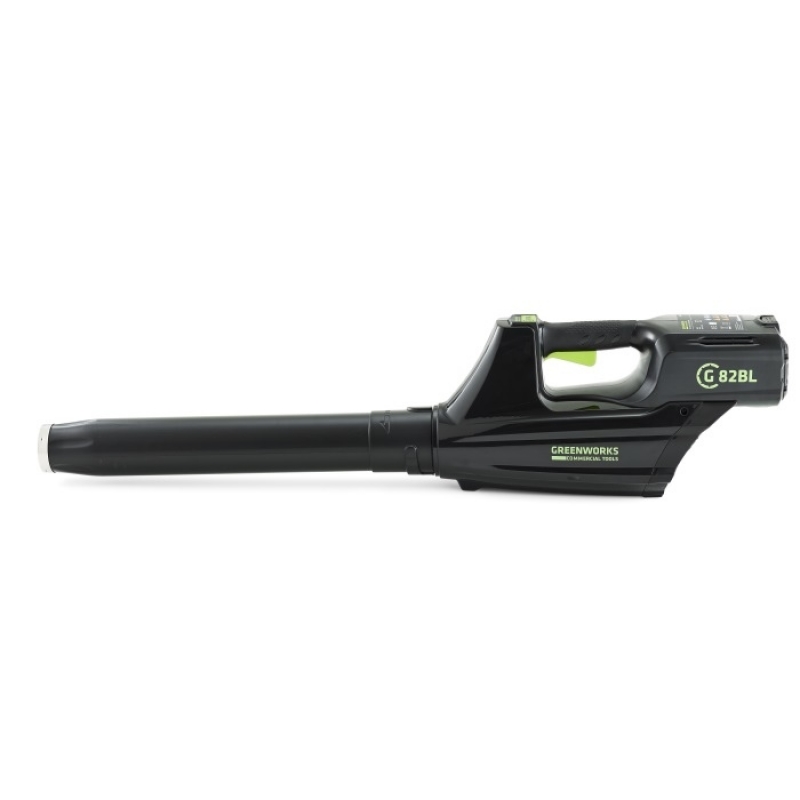 Модель оснащена надежным бесщеточным двигателем DigiPro, сопоставимым по мощности с бензиновыми аналогами, при этом он абсолютно экологичен, имеет высокий крутящий момент, низкий уровень шума и вибраций, а так же прост в эксплуатации. Данная модель имеет плавную регулировку скорости. Развесовка (центр тяжести масс) устройства сбалансирована таким образом, чтобы кисть руки не уставала при длительной работе. Воздуходув использует аккумуляторы 82V Commercial, которые совместимы с другими устройствами линейки 82V.